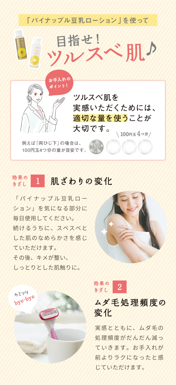 最初はあまり変わらないかなと思いましたが、塗り方(毛の生え方と逆向きに塗る)を教えてもらい、 かつ除毛クリームと併用していると、ムダ毛の処理頻度が減ってきた気がします!(saya_n様)